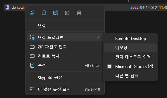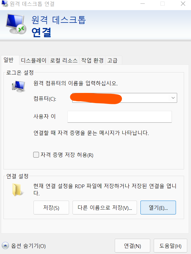 일단 원격 설정에서 옵션 표시 해주신 후 rdp 파일을 저장해야해요!
